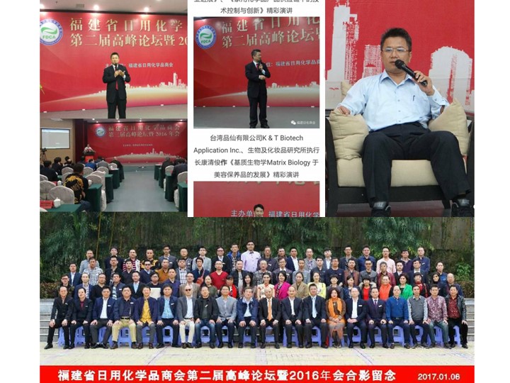 【活动】2017/1/6-7品仙代表出席福建日化商会第二届高峰论坛。作「基质生物学Matrix Biology于美容保养品的发展」专题演讲。矩阵生物学(基质生物学),拓朴学+细胞生物学+分子生物学+量子生物学,为新的产业时代提出方向,并祝福两岸在这方面的合作对双方更加有意义,向国际发展。